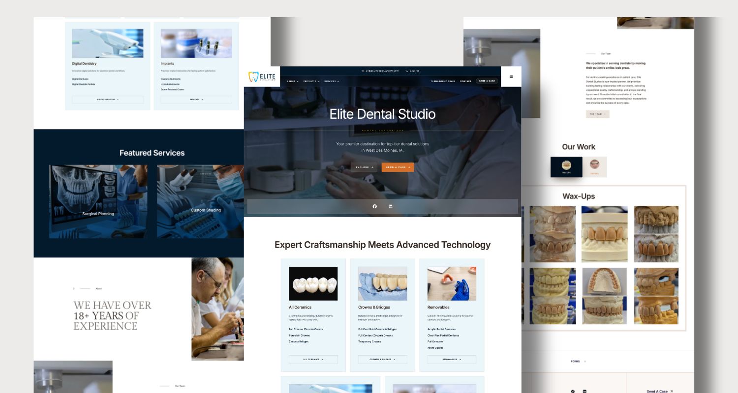 Elite Dental Studio is a dental lab located in West Des Moines, Iowa. We redesigned their website and implemented their brand throughout the entirety of the site, as well as built out an extensive product and service catalog.